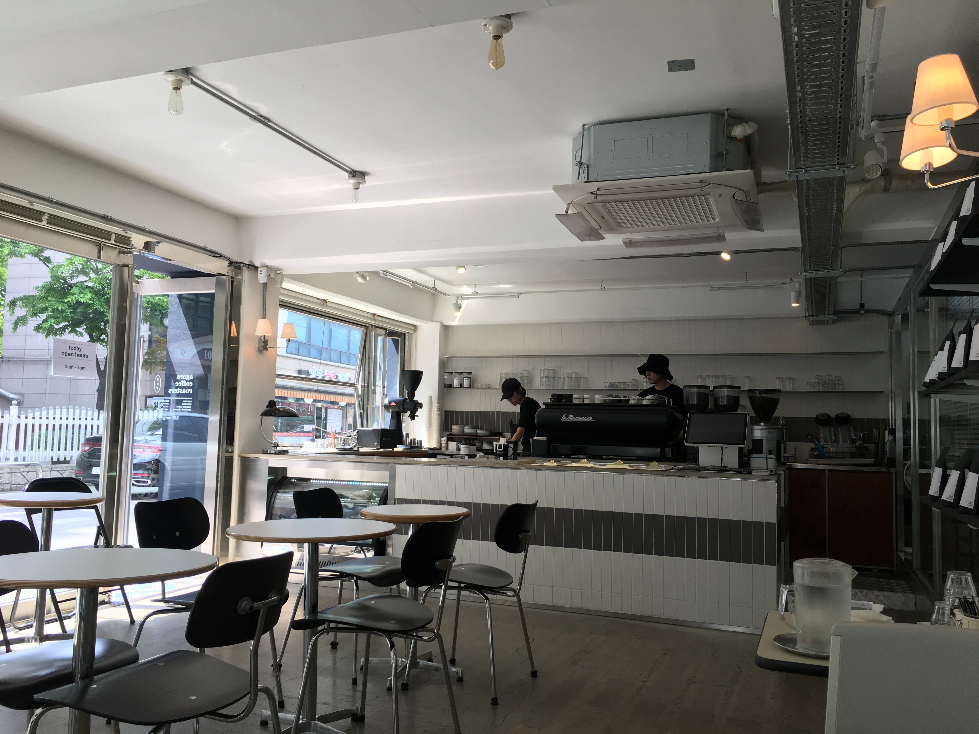5월의 첫 아침에 방문했더니 날이 너무 좋아 자리에서 카운터 쪽을 찍어보았습니다.