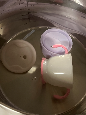 빨대는 살짝 힘을 줘야 올라오는 구조. 스스로 마시는 건 좀 더 크고 나서 가능할 듯. 초반엔 부모가 조금 도와줘야 한다. - 열탕소독