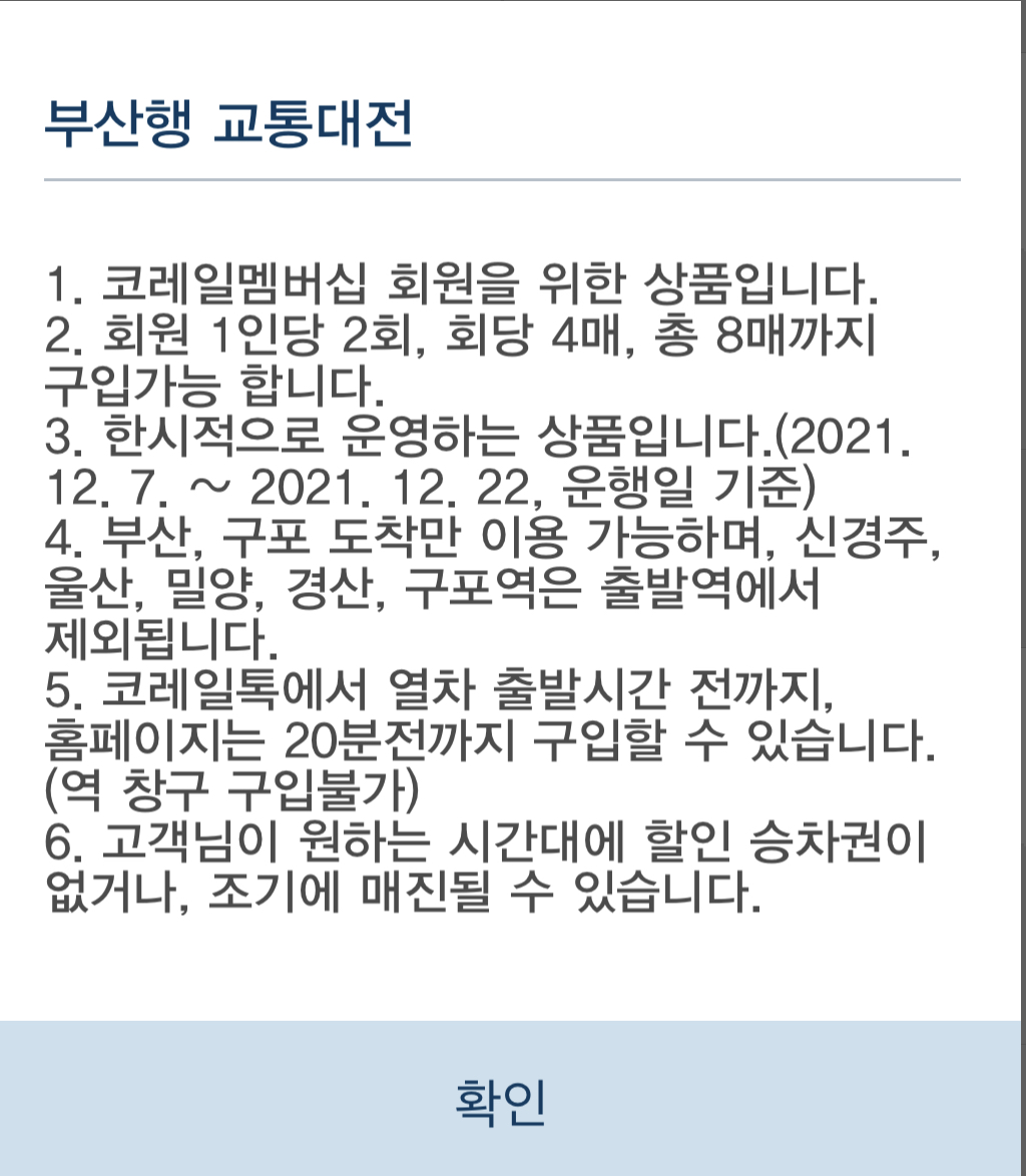 코레일에서 부산역 도착 후 50% 페이백 해주는 이벤트를 12/7 ~ 12/22 까지 한시적으로 진행합니다.
