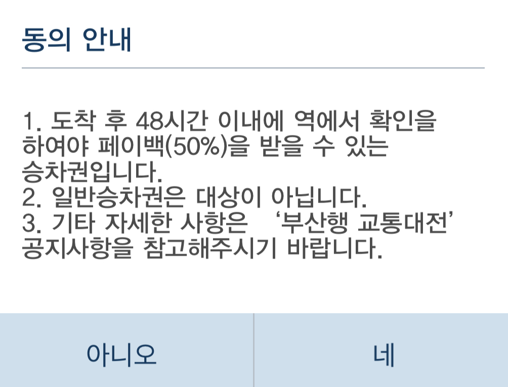 - 부산역/구포역 도착으로만 페이백 신청 사용 가능