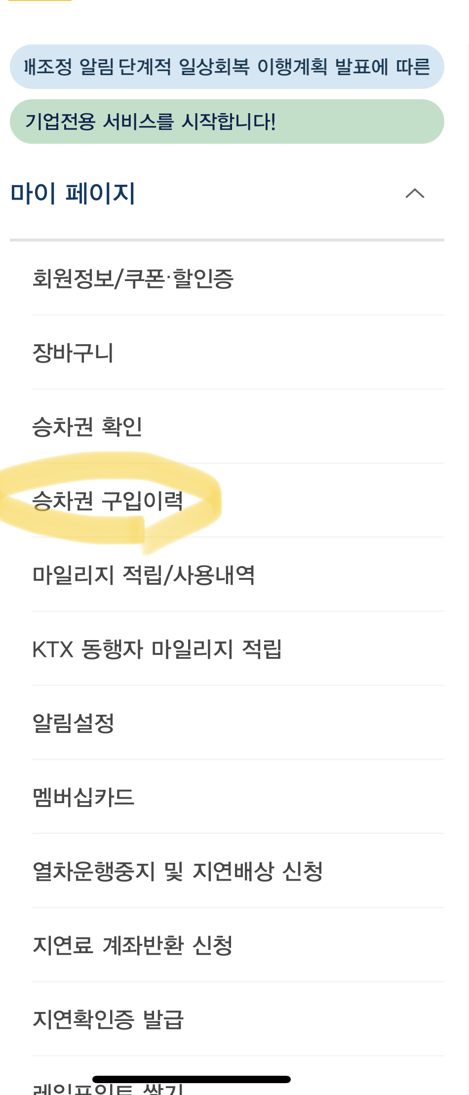 앱 오른쪽 상단 세줄 아이콘 클릭 - 승차권구매이력 클릭